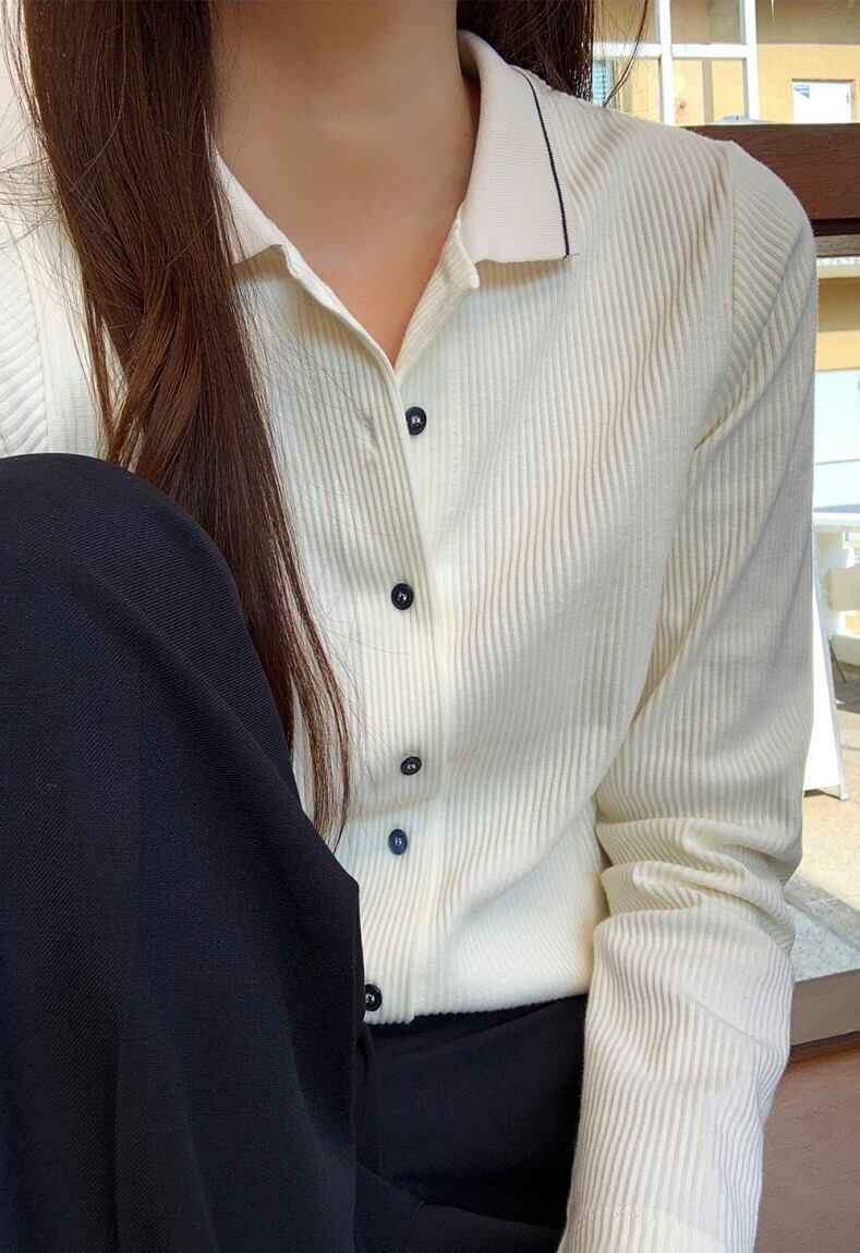 トップス シャツ ブラウス カーディガン 白シャツ 白トップス ミディアム丈 袖あり 長袖 Vネック 襟付き スリム 細身 リブ 前開き リブニット 綿 ニット サマーニット 薄手 きれいめ シンプル カジュアル 大人 上品 おしゃれ お洒落 かっこいい 大人女子 メンズライク マニッシュ クール 柄 シマ オールシーズン 10代 20代 30代 40代 50代 60代 レディース オフィス ビジネス OL 通勤 学生 通学 休日 就活 着回し 重ね着 楽ちん 定番 白 ホワイト ネイビー