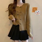 トップス アウター カーディガン ジャケット 上着 ショート ショート丈 袖あり 長袖 ラウンドネック スリム 細身 ふわふわ 前開き ニット 厚手 かわいい 大人 上品 おしゃれ お洒落 かっこいい レトロ 個性的 クール モード系 エレガント 主役級 存在感 無地 秋 冬 レディース デート お出かけ 休日 パーティー イベント リゾート 旅行 レストラン 着回し 普段使い 重ね着 楽ちん 暖かい 防寒 モテ 美脚 脚長 M L XL 2XL 3XL 4XL 赤 レッド カーキ くすみカラー 大人カラ