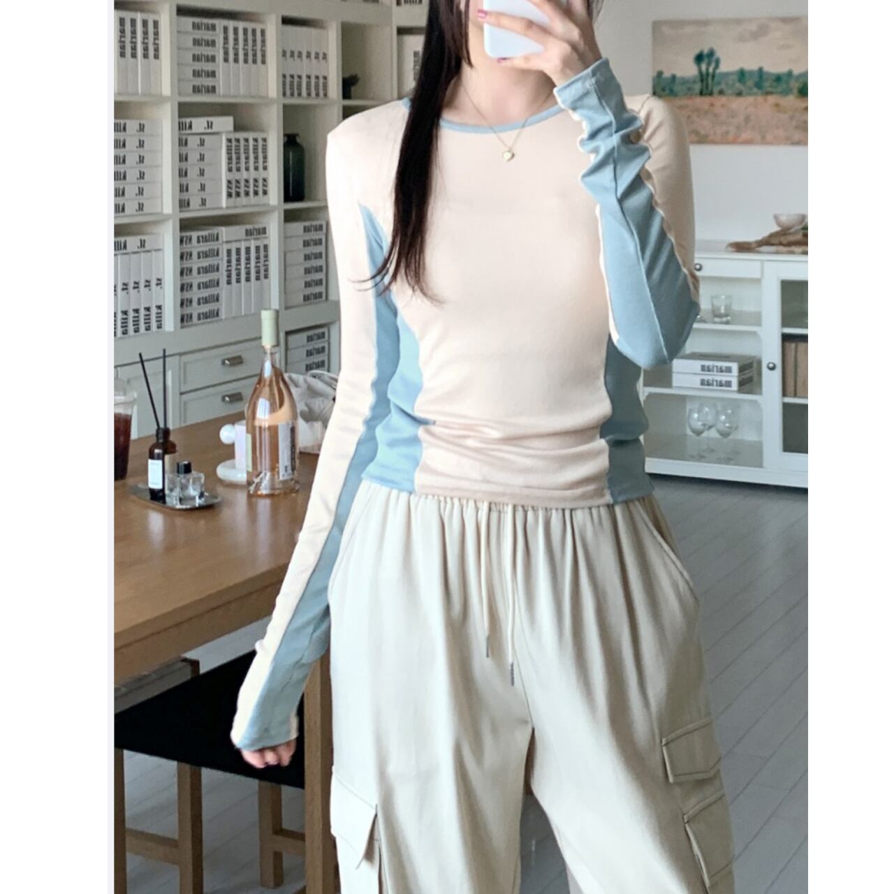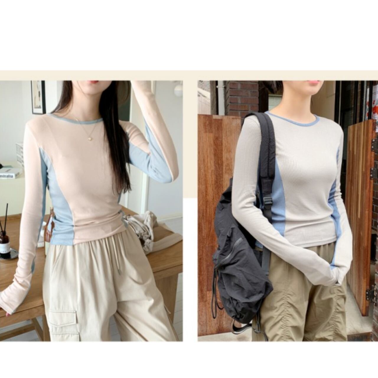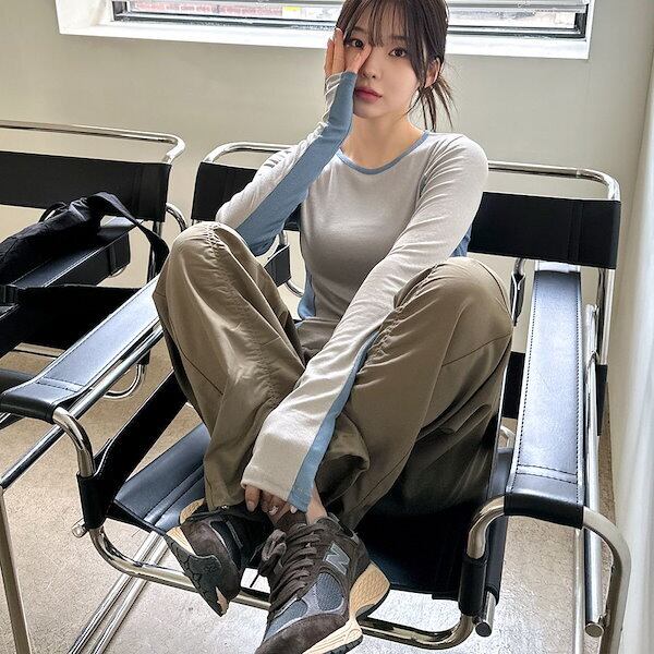 スポーティー配色 トップス Tシャツ 長袖 ラウンドネック スリム タイト リブ かわいい 大人可愛い シンプル カジュアル おしゃれ お洒落 かっこいい こなれ感 ラフ ボーイッシュ スポーティー ラブリー キュート 個性的 クール 存在感 抜け感 無地 春 秋 冬 レディース ママ 学生 公園デビュー 女子会 お泊まり 休日 運動 ジム ヨガ アウトドア イベント リゾート 旅行 高原 ガーデン 着回し 普段使い 重ね着 お揃い 韓国系 オルチャン ファッション コーデ スタイル 楽ちん インスタ映え