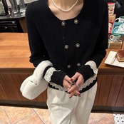 袖と裾のレース飾りが上品なショート丈カーディガンです♪