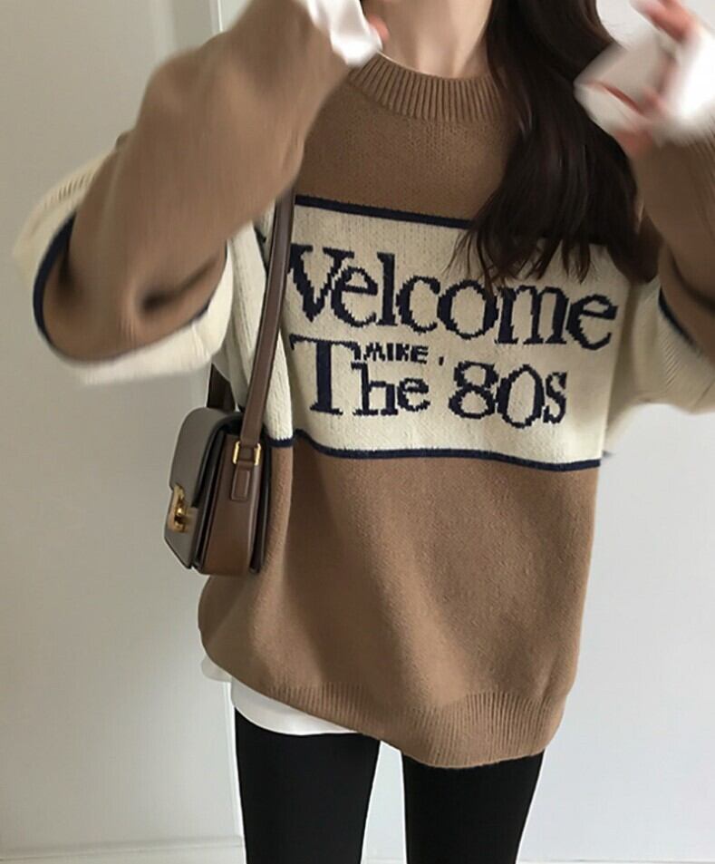 レトロなアルファベットロゴがアクセントになった、メンズライクなニットセーターです☆