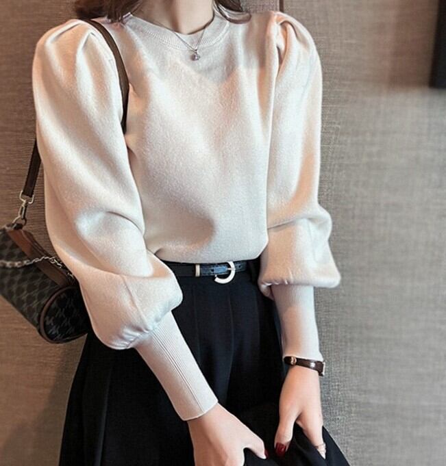 こちらのニットソーはショート丈でパフスリーブの大人可愛いデザインです☆