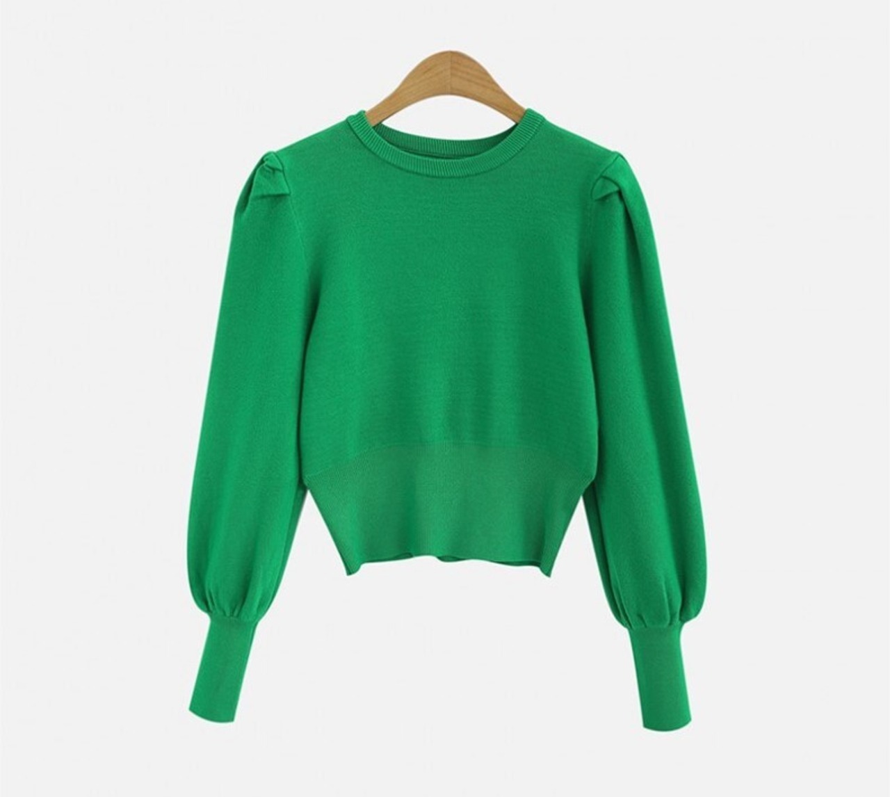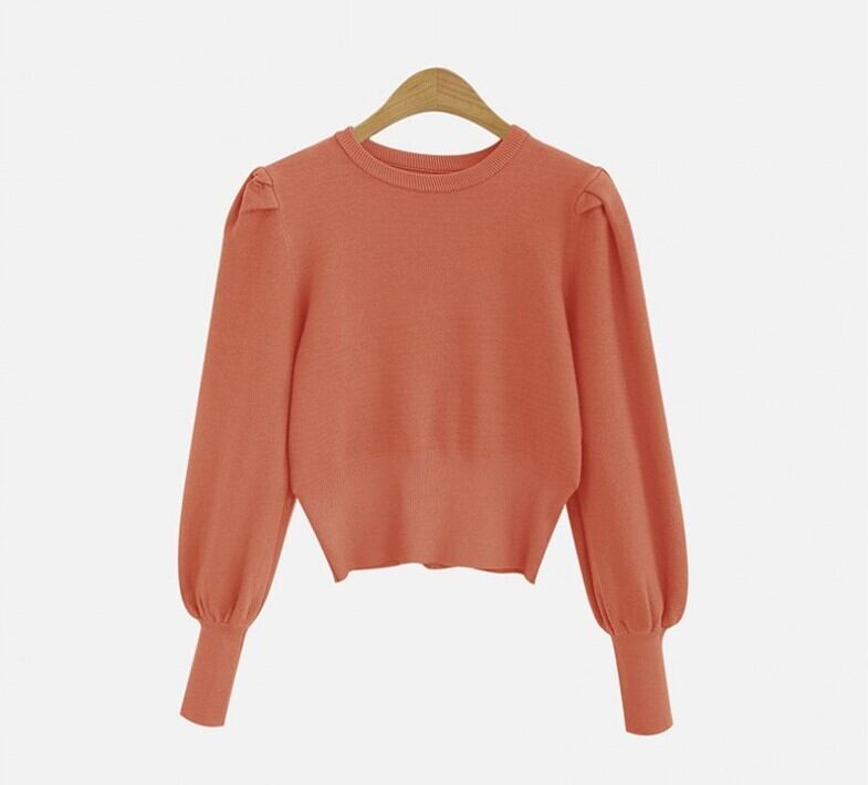 トップス ニットソー セーター プルオーバー ショート ショート丈 袖あり 長袖 パフスリーブ ラウンドネック スリム タイト 細身 リブ ニット 厚手 大人可愛い きれいめ シンプル カジュアル 大人 上品 おしゃれ クール セクシー エレガント フォーマル 無地 オールシーズン レディース オフィス ビジネス OL 通勤 学生 通学 デート お出かけ 休日 パーティー イベント リゾート レストラン 着回し 普段使い モテ 体系カバー フリーサイズ 黒 ブラック 緑 グリーン ベージュ オレンジ 大人