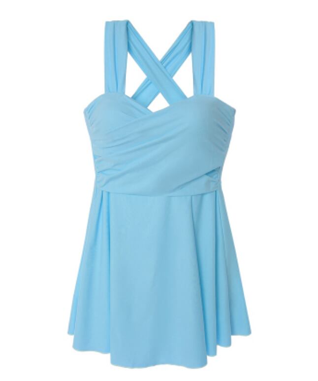 華やかな6カラー展開が嬉しい大人可愛いフレアスカートのスイムワンピース♪バスト周りに施されたギャザーが胸元を美しく、バッククロスされた幅広ストラップもアクセントに。スカートの下はショートパンツになっているので動きやすく安心感があります◎