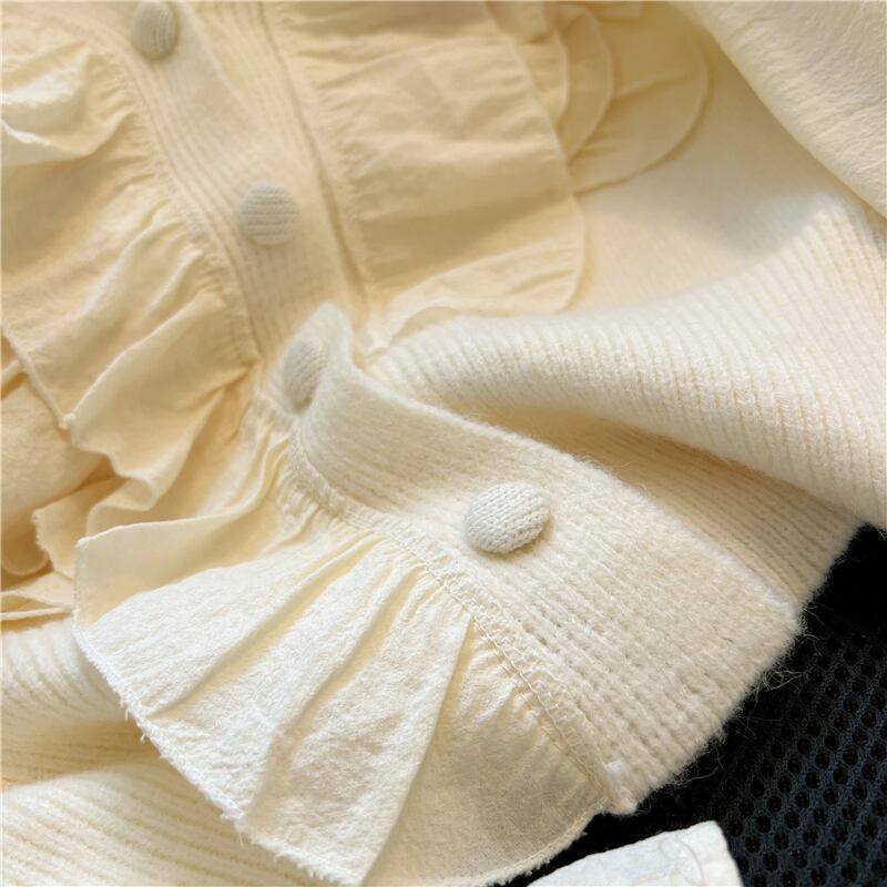肩と袖のフリルが目を惹くニットカーディガンです♪