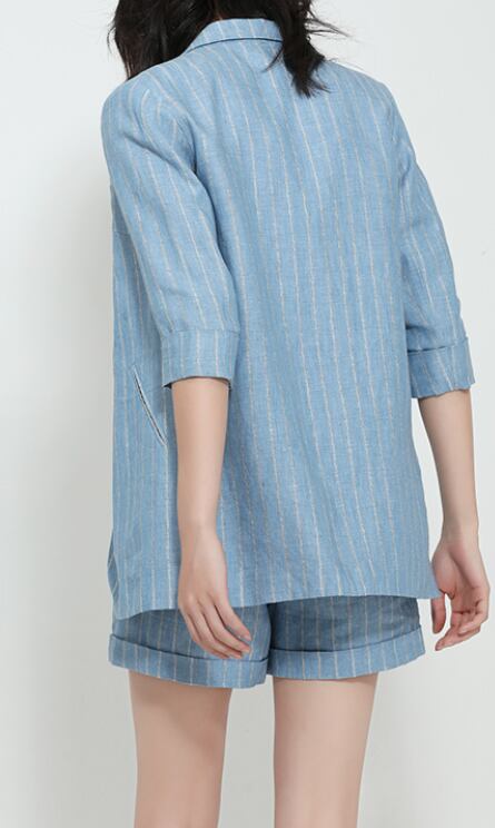 セットアップ ジャケット ズボン ショートパンツ ショート ショート丈 袖あり 7分袖 七分袖 Vネック 襟付き ストレート ポケット ハイウエスト 前開き 薄手 上下セット 2点セット かわいい 大人可愛い きれいめ シンプル カジュアル 大人 おしゃれ お洒落 大人女子 こなれ感 ラフ 個性的 主役級 存在感 とろみ感 抜け感 柄 ストライプ 夏 誕生日 10代 20代 30代 40代 50代 60代 レディース 女性用 ママ オフィス ビジネス OL 通勤 学生 通学 デート お出かけ 公園デビュー