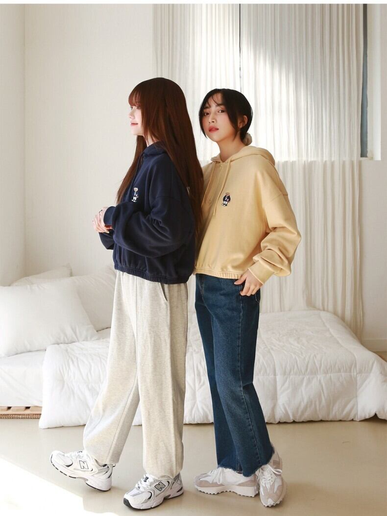 クロップド メランジ トップス プルオーバー パーカー トレーナー ドロップショルダー 萌袖 刺繍 かわいい カジュアル おしゃれ ラフ メンズライク マニッシュ ボーイッシュ ラブリー キュート ガーリー ルーズ キャラクター 10代 20代 レディース ペア 学生 通学 お出かけ 女子会 お泊まり 休日 アウトドア 着回し 普段使い お揃い 双子 韓国 楽ちん フリーサイズ ブラック グレー ベージュ ネイビー