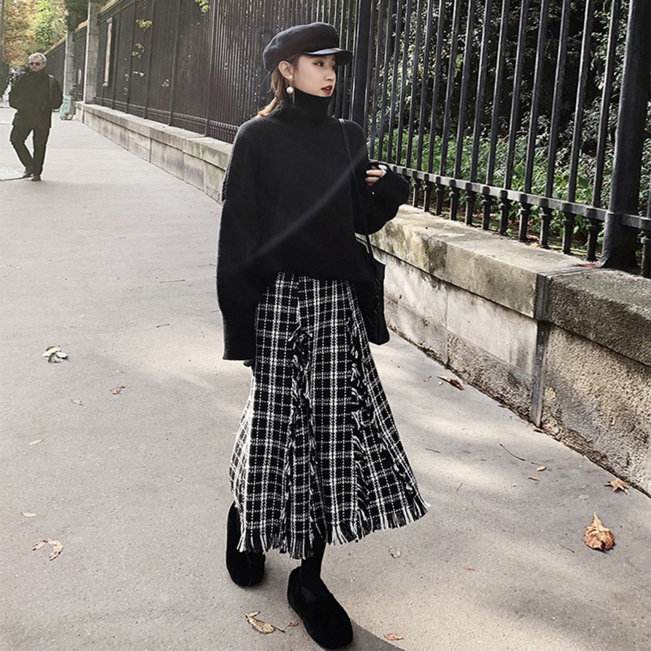 セーターとロングスカートの魅力が詰まった上品なセットアップ。ロング丈のセーターは、ハイネックで暖かく、Aラインのツイード柄のスカートは個性的な魅力を引き立てます。秋から冬にかけてのシーズンや特別な日にぴったりで、ビジネスやOLの通勤スタイル、学生やデート、お出かけにもおすすめ。レストラン、ショッピング、女子会など幅広いシーンで優雅な存在感を放ちます。