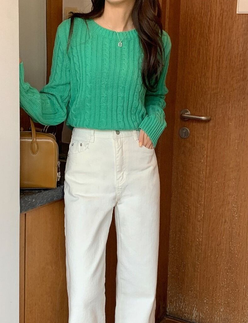 トップス ニットソー セーター プルオーバー ショート ショート丈 袖あり 長袖 萌袖 ラウンドネック 襟なし スリム タイト 細身 ふわふわ リブ ケーブルニット 伸縮性 ニット 厚手 かわいい 大人可愛い きれいめ カジュアル 大人 上品 おしゃれ レトロ ラブリー キュート ガーリー エレガント モダン 柄 冬 オフィス ビジネス OL 通勤 学生 通学 デート お出かけ 女子会 休日 レストラン 着回し 普段使い 楽ちん 暖かい モテ フリーサイズ 白 ホワイト 緑 グリーン ピンク ネイビー