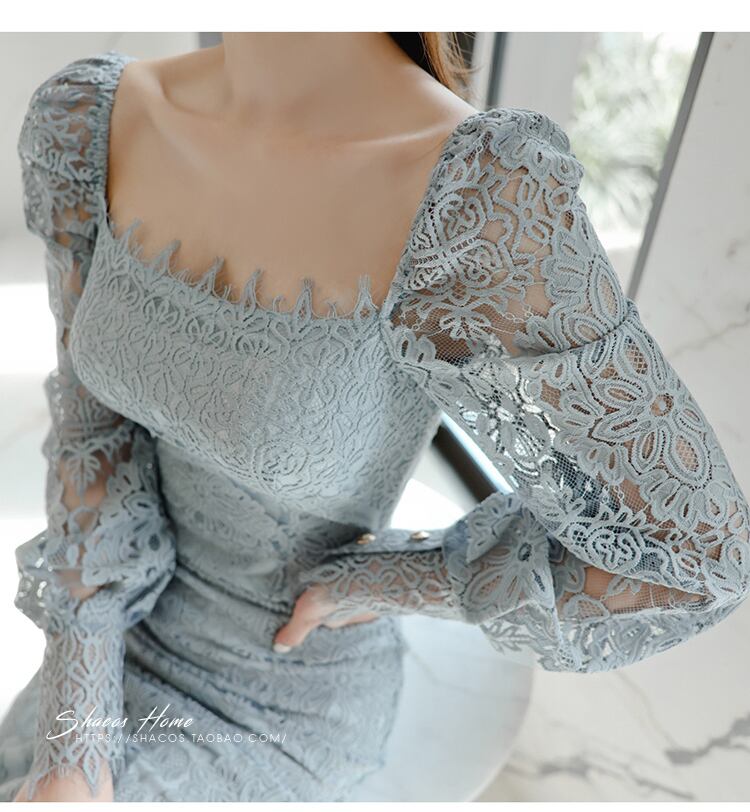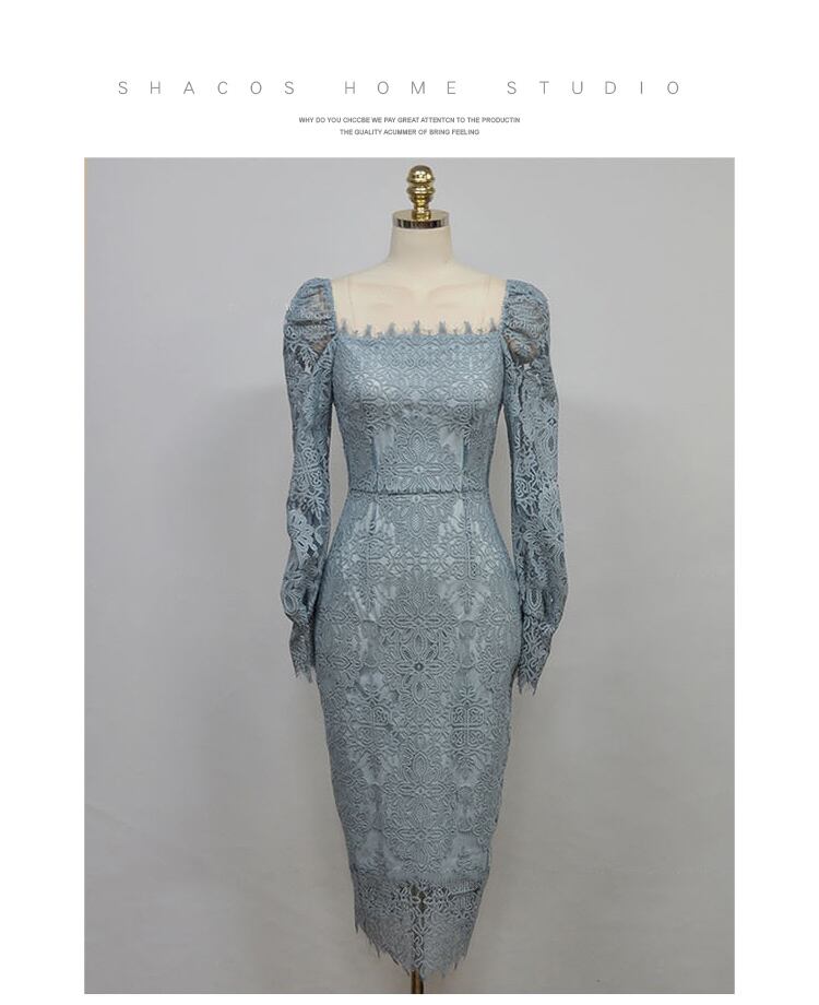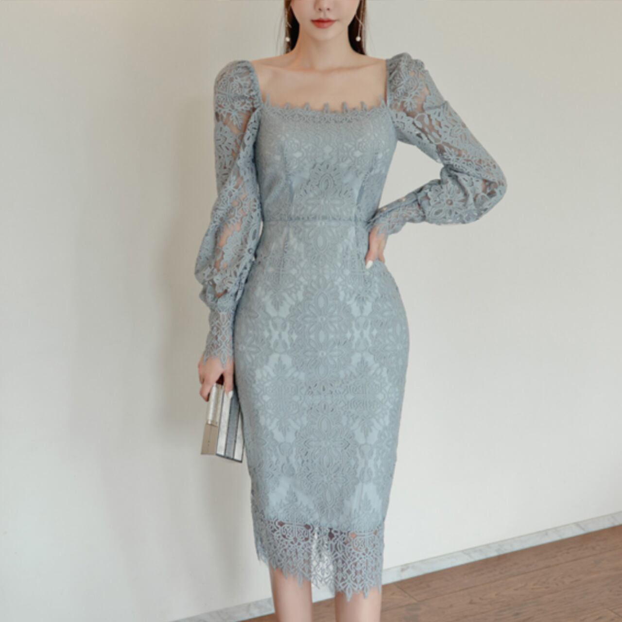 フェミニン スリムドレス ワンピース ペンシルスカート ワンピドレス 膝丈 ひざ丈 長袖 パフスリーブ 萌袖 スリム レース ファスナー きれいめ 大人 上品 おしゃれ お洒落 かっこいい エキゾチック 大人女子 個性的 クール モード系 セクシー エレガント 主役級 存在感 花柄 オールシーズン 結婚式 披露宴 レディース パーティー イベント ホテル レストラン 韓国 韓国系 オルチャン ファッション コーデ スタイル モテ 脚長 インスタ映え S M L XL 黒 ブラック 青 ブルー
