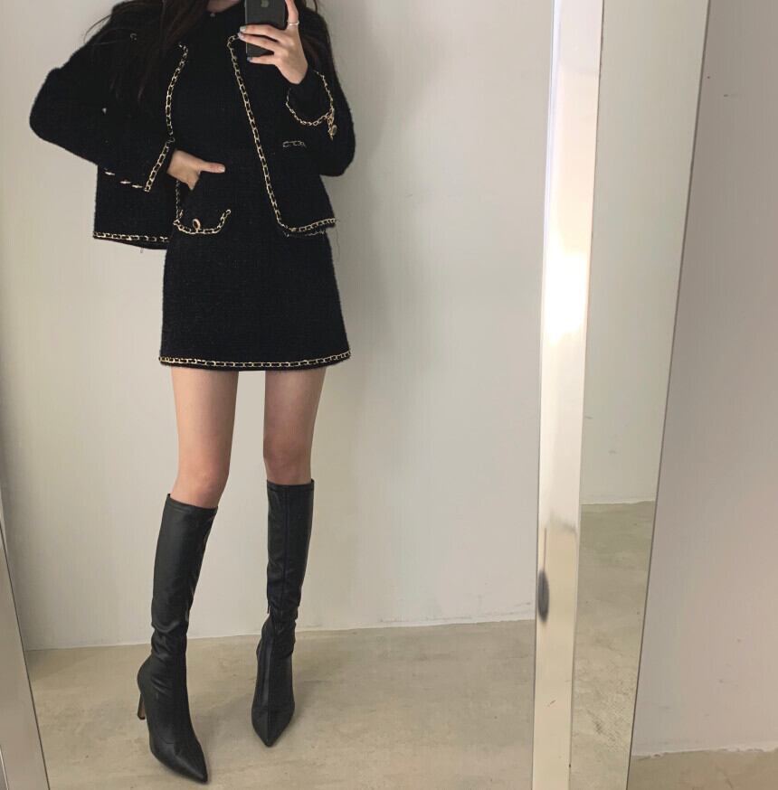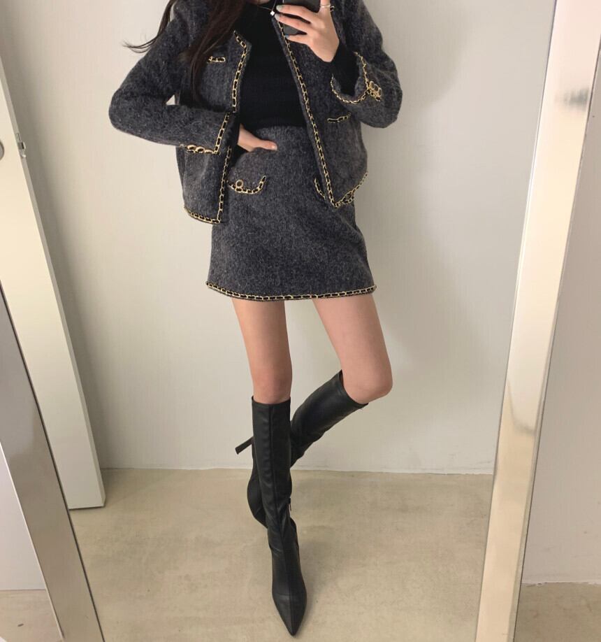 セットアップ ツーピース スカート アウター ジャケット ミニスカート ミニ ミニ丈 袖あり 長袖 襟なし ノーカラー ポケット 前開き コンサバ 上下セット 2点セット きれいめ シンプル カジュアル 大人 おしゃれ かっこいい クール エレガント フォーマル 都会的 ラグジュアリー ハイエンド 無地 秋 冬 20代 30代 40代 レディース 女性用 オフィス ビジネス OL 通勤 パーティー ホテル レストラン Bar 婚活 合コン 着回し 普段使い 重ね着 韓国系 モテ 暖か ブラック グレー