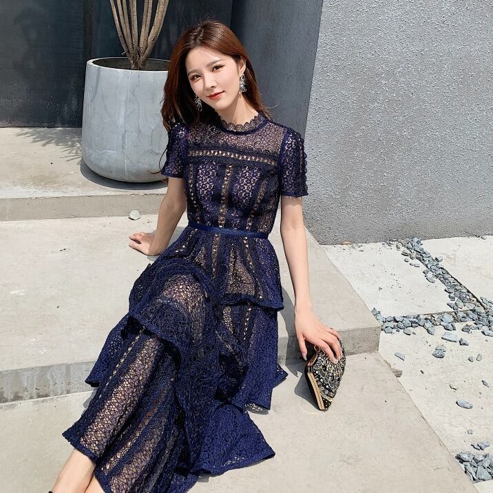 ドレス ワンピース ティアードワンピース ワンピドレス ロング ロング丈 袖あり 半袖 スタンドネック フレア Aライン レース ウエストマーク 透け感 ティアード 薄手 きれいめ シンプル カジュアル 上品 おしゃれ レトロ こなれ感 キュート 個性的 存在感 都会的 ラグジュアリー ハイエンド ドレッシー 清楚 夏 結婚式 二次会 10代 20代 30代 レディース 女性用 休日 パーティー イベント ホテル レストラン 婚活 モテ XS S M L XL 2XL 大きいサイズ ブルー ネイビー