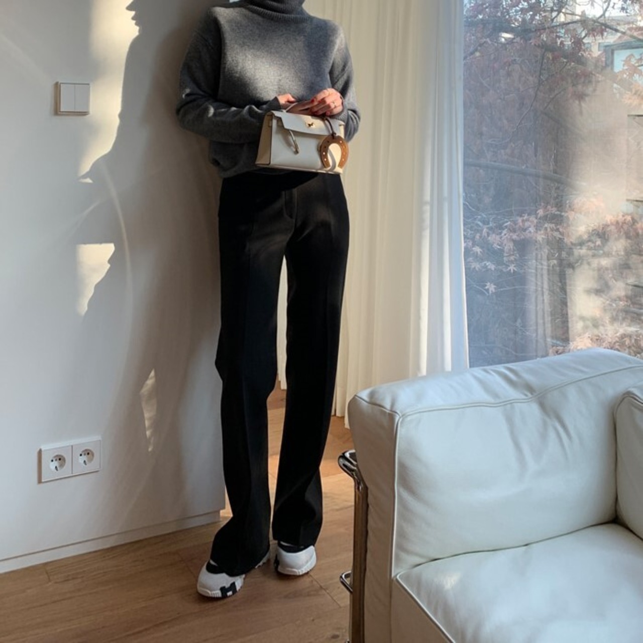 シンプルなデザインでどんなトップスにも合わせやすく幅広いコーディネートにお使いいただけます。