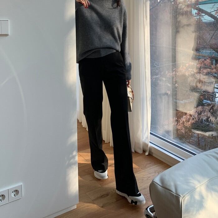 ストレートですがゆったりとしているので体系をカバーして着用することができます。