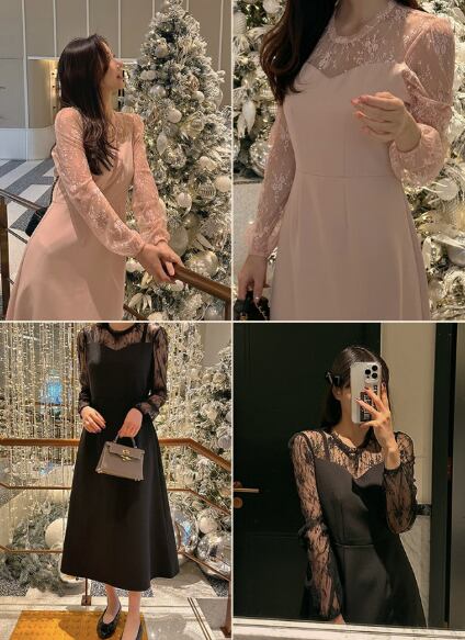 ワンピース フレアワンピース ワンピドレス 膝下 ミモレ ミモレ丈 7分丈 袖あり 長袖 パフスリーブ ラウンドネック 襟なし セミフレア レース シフォン ドッキング 大人可愛い きれいめ シンプル 大人 上品 おしゃれ お洒落 大人女子 セクシー エレガント フォーマル 無地 柄 花柄 小花柄 フラワー リーフ柄 春 夏 秋 冬 オールシーズン 10代 20代 30代 40代 50代 60代 レディース パーティー S M L XL 2XL 3XL 4XL 5XL 6XL 黒 ブラック ピンク