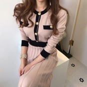 ワンピース ニットワンピース ロング ロング丈 袖あり 長袖 ラウンドネック 襟なし Aライン プリーツ ウエストマーク 切り替えデザイン 前開き コンサバ バイカラー 配色 ニット 薄手 きれいめ シンプル カジュアル 上品 おしゃれ レトロ こなれ感 キュート フォーマル 抜け感 都会的 ラグジュアリー 清楚 無地 春 秋 20代 30代 40代 レディース 女性用 オフィス ビジネス OL 通勤 デート お出かけ パーティー ホテル レストラン Bar 婚活 合コン 着回し 楽ちん モテ ピンク