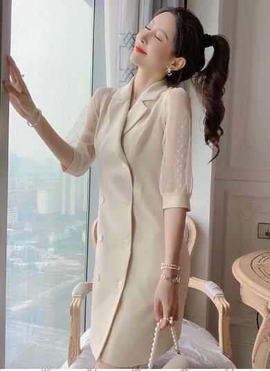 肩にかけられる程の程よい袖丈で、スタイルアップ効果も期待できるすっきりとしたシルエット。Aラインの切り替えデザインとウエストマークで、女性らしい丸みのあるフォルムに仕上がります。