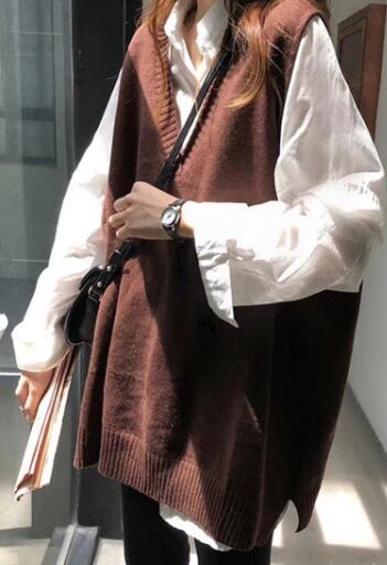 暖かみのある素材感が魅力の「トップス ニットソー ベスト 袖なし Vネック ケーブルニット リブニット」。女性はもちろん、男性にも人気の一枚です。