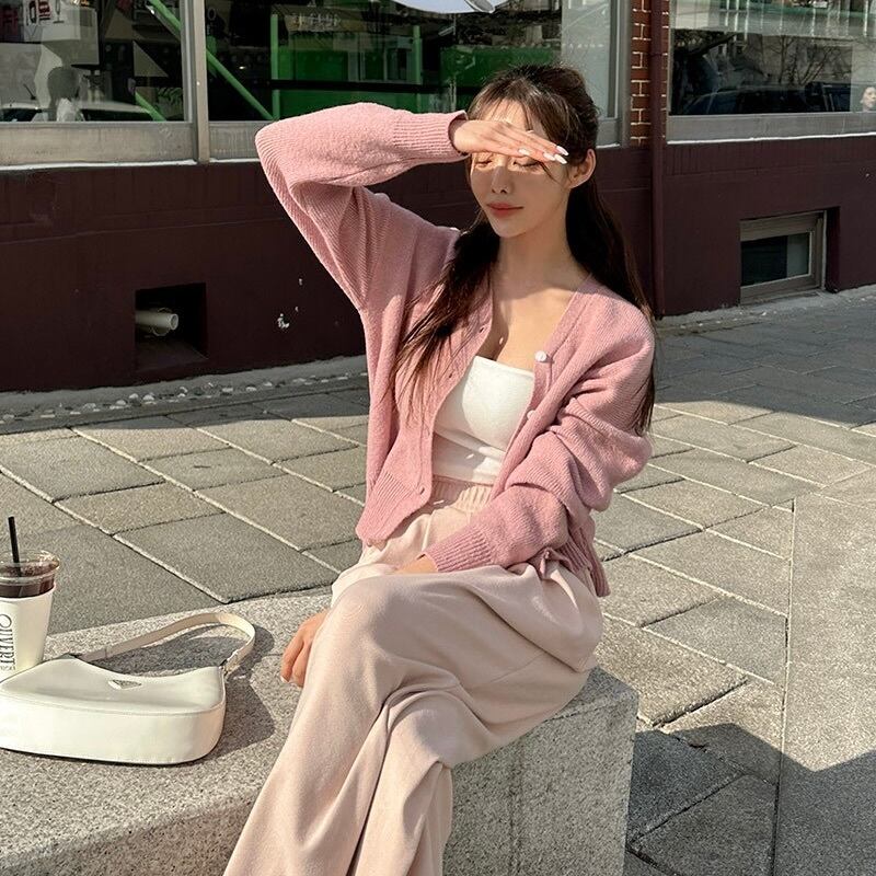 トップス カーディガン 袖あり 長袖 萌袖 Vネック 襟なし 前開き 伸縮性 ニット かわいい 大人可愛い きれいめ シンプル カジュアル 大人 上品 おしゃれ レトロ 大人女子 こなれ感 ラフ ラブリー キュート ガーリー ルーズ クール エレガント フォーマル 抜け感 無地 春 秋 10代 20代 30代 レディース デート お出かけ 女子会 休日 着回し 普段使い 重ね着 お揃い 双子 韓国 オルチャン ファッション コーデ スタイル 楽ちん モテ トレンド インスタ映え くすみカラー 大人カラー