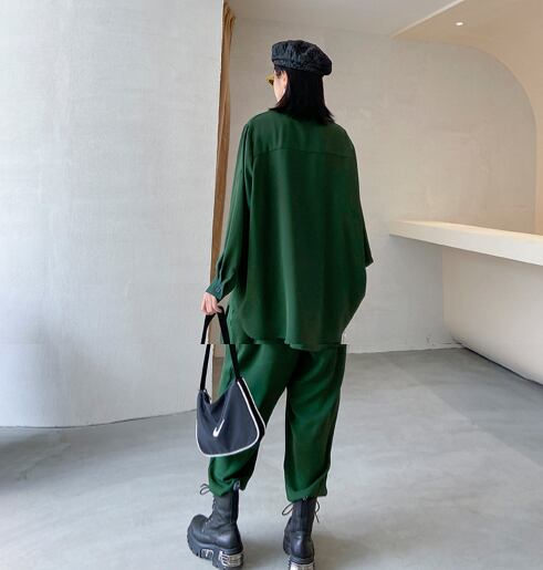 トップス ボトムス セットアップ シャツ ブラウス ジョガーパンツ 長袖 襟付き ボタン 2way 上下セット 2点セット ツーピース お得 大人 おしゃれ お洒落 かっこいい エスニック エキゾチック メンズライク マニッシュ 個性的 クール 主役級 存在感 無地 秋 冬 10代 20代 レディース 女の子 イベント 着回し 普段使い 重ね着 韓国 韓国系 オルチャン ファッション コーデ スタイル 楽ちん 体系カバー 美脚 脚長 M L XL 2XL 大きい 大きめ ゆったり ゆる ブラック 緑
