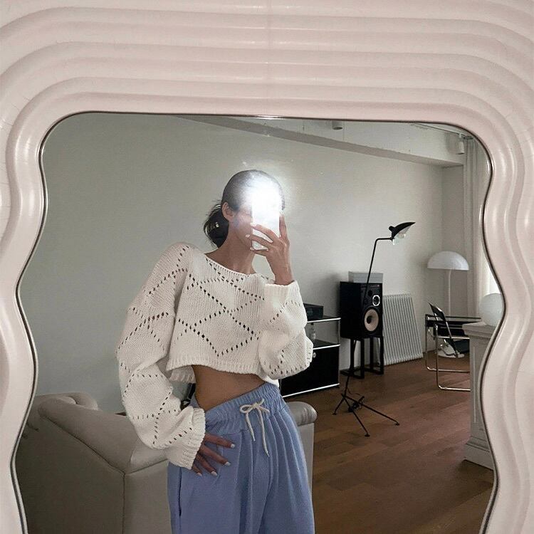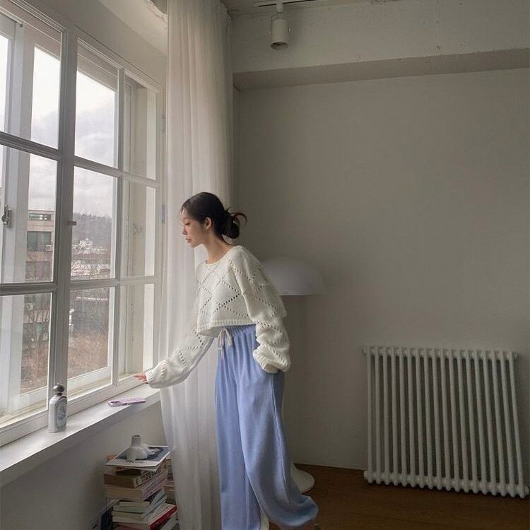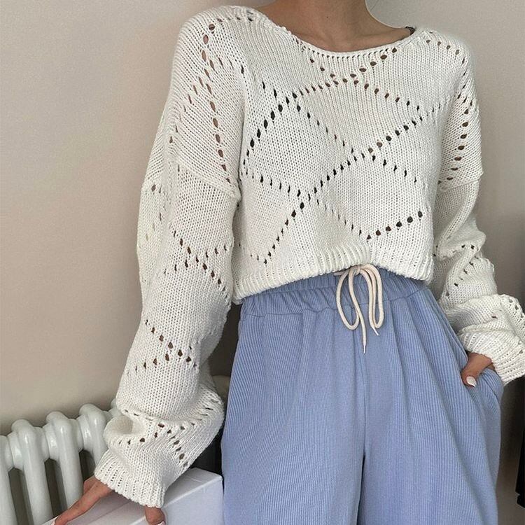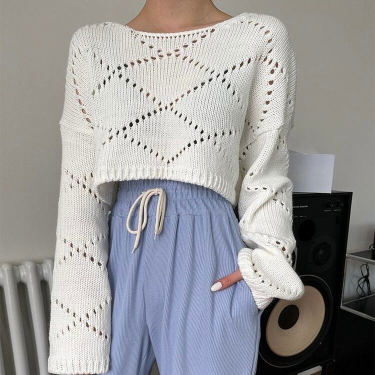 クロップド トップス ニットソー ミニ ミニ丈 袖あり 長袖 萌袖 Uネック ラウンドネック クルーネック 襟なし クロシェ 透け感 伸縮性 ニット かわいい 大人可愛い きれいめ シンプル カジュアル 大人 おしゃれ 大人女子 こなれ感 ラフ ラブリー キュート ガーリー ルーズ 個性的 クール セクシー 抜け感 無地 春 10代 20代 30代 デート お出かけ 女子会 お泊まり 休日 着回し 普段使い 韓国 オルチャン ファッション コーデ スタイル 楽ちん モテ トレンド インスタ映え ゆったり