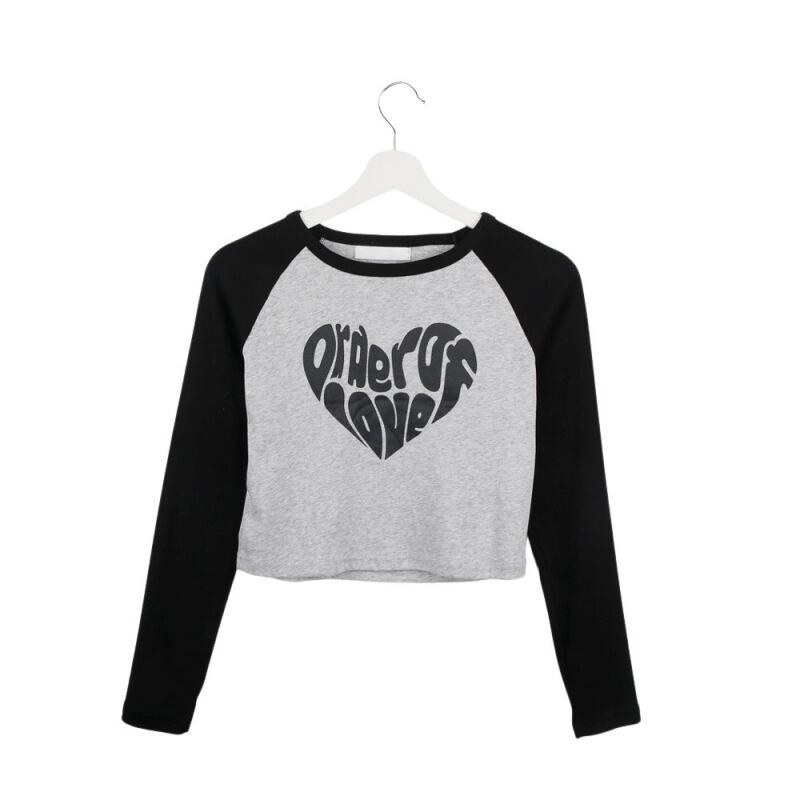 ラグランスリーブ クロップド トップス Tシャツ カットソー 袖あり 長袖 クルーネック かわいい カジュアル おしゃれ お洒落 かっこいい ラフ メンズライク マニッシュ ボーイッシュ スポーティー キュート ガーリー ルーズ プリント 春 夏 秋 レディース 女性用 学生 通学 デート お出かけ 公園デビュー 女子会 休日 着回し 普段使い 重ね着 お揃い 双子 韓国 オルチャン 楽ちん フリーサイズ ホワイト グレー