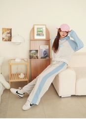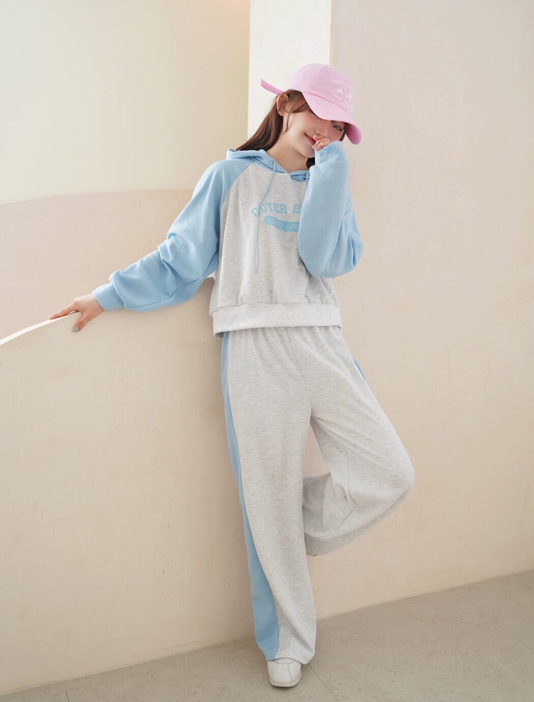 ラグランスリーブ トップス ボトムス セットアップ ルームウェア パジャマ パーカー スウェット 部屋着 袖あり 長袖 萌袖 上下セット 2点セット かわいい カジュアル おしゃれ お洒落 かっこいい ラフ メンズライク マニッシュ ボーイッシュ スポーティー キュート ルーズ プリント 春 秋 冬 レディース 女性用 学生 お泊まり 休日 運動 ジム アウトドア 着回し 普段使い お揃い 双子 韓国 楽ちん フリーサイズ ブルー パープル ネイビー