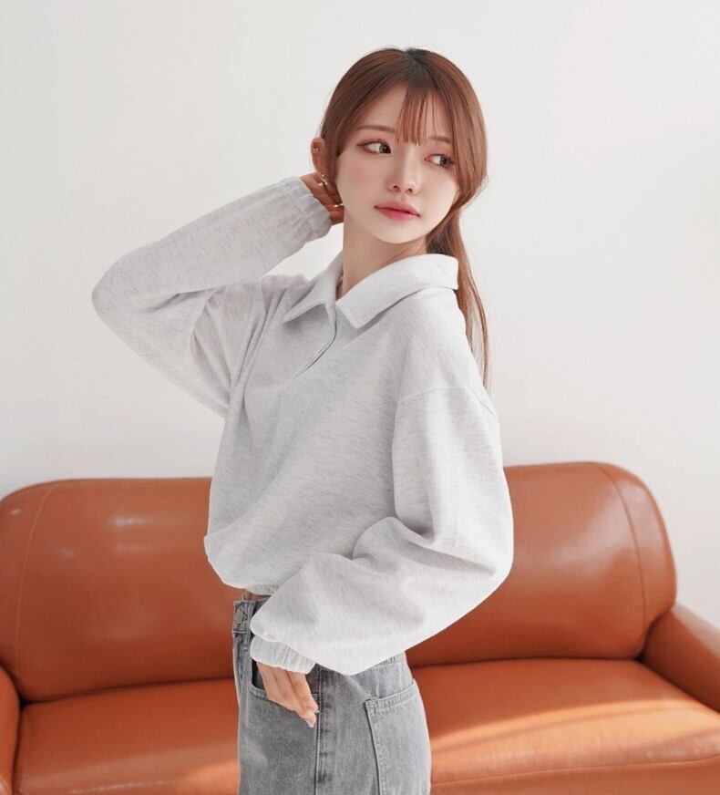 クロップド丈 トップス プルオーバー トレーナー スウェット 袖あり 長袖 ボリューム袖 ドロップショルダー 萌袖 襟付き かわいい 大人可愛い きれいめ シンプル カジュアル おしゃれ お洒落 かっこいい こなれ感 ラフ マニッシュ ガーリー ルーズ 無地 春 秋 冬 学生 通学 デート お出かけ 公園デビュー 女子会 お泊まり 休日 アウトドア イベント 着回し 普段使い 重ね着 お揃い 双子 韓国 楽ちん 脚長 トレンド フリーサイズ ゆる ホワイト ブルー グレー ピンク