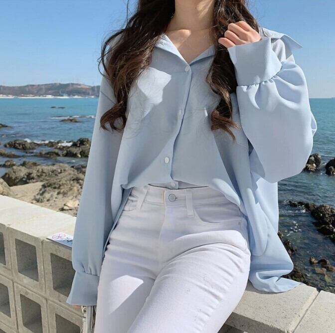 トップス シャツ 袖あり 長袖 襟付き 前開き 透け感 大人可愛い きれいめ シンプル カジュアル 大人 おしゃれ お洒落 大人女子 こなれ感 ラフ フォーマル とろみ感 抜け感 無地 春 夏 10代 20代 30代 40代 レディース 女性用 オフィス ビジネス OL 通勤 学生 通学 デート お出かけ 女子会 お泊まり 休日 アウトドア イベント 旅行 ショッピング 着回し 普段使い 重ね着 ファッション コーデ スタイル 定番 ブルー ベージュ