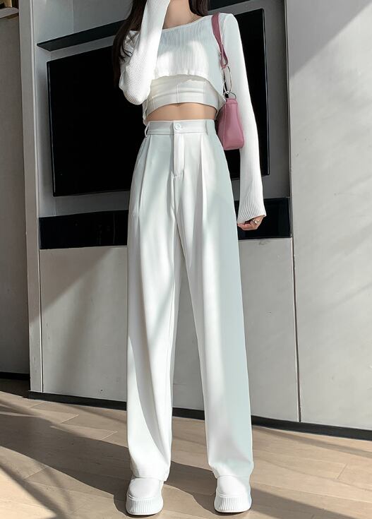 ストレートパンツはどんなスタイルにも合わせやすく、おしゃれに見えるので大人カジュアルなコーデにぴったりです。ハイウエストで美脚効果も抜群!