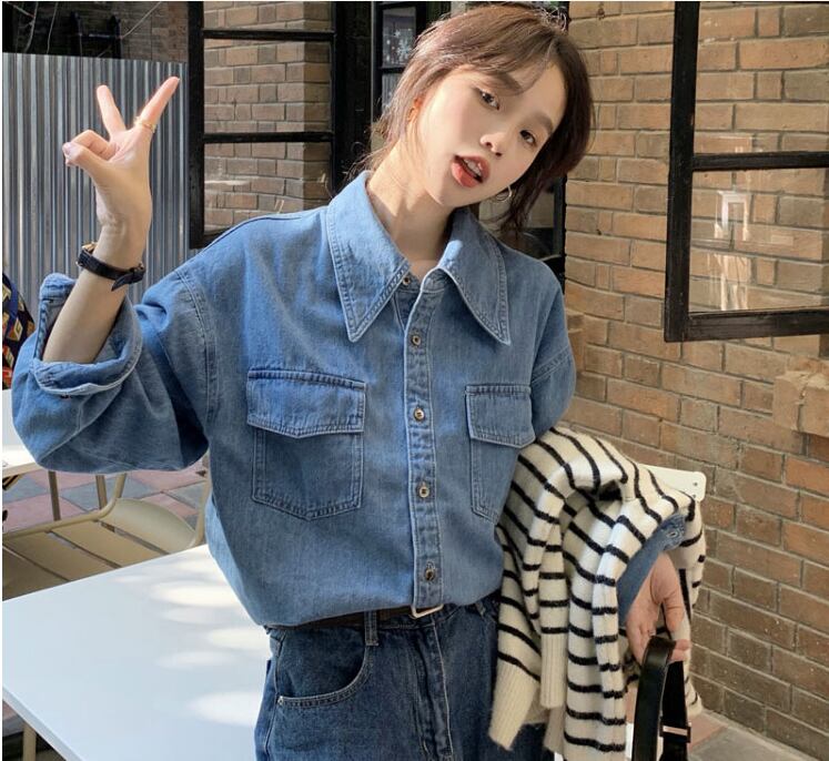 ルーズシャツ ブルーデニムシャツ トップス Tシャツ シャツ ブラウス ビッグT ロング 袖あり 長袖 Vネック 襟付き ストレート ワイド Iライン ポケット 前開き デニム ブルーデニム かわいい 大人可愛い きれいめ シンプル カジュアル 大人 上品 おしゃれ お洒落 かっこいい レトロ 大人女子 こなれ感 ラフ ボーイッシュ ガーリー ルーズ クール モード系 エレガント モダン 主役級 存在感 無地 春 秋 冬 10代 20代 30代 40代 50代 60代 レディース 女性用 ママ OL 学生