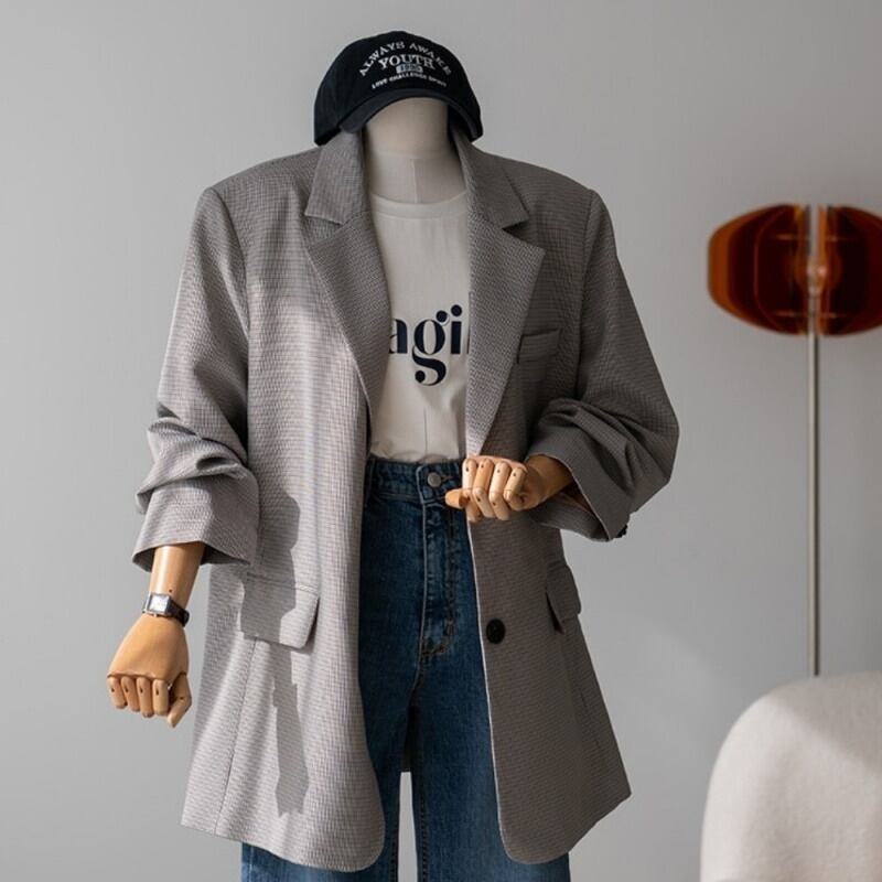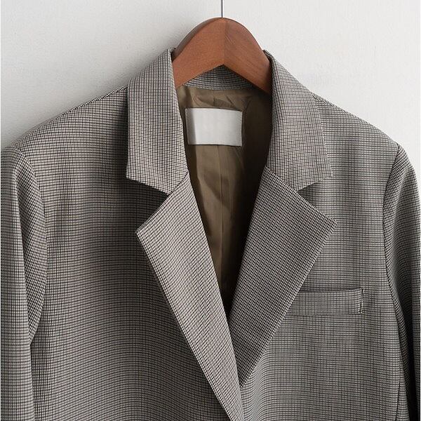 チェック柄 シングル ジャケット 襟付き スリット バックスリット ポケット 前開き 大人可愛い きれいめ シンプル 大人 上品 おしゃれ お洒落 かっこいい レトロ 大人女子 こなれ感 ラフ ボーイッシュ ルーズ 個性的 クール モード系 存在感 とろみ感 抜け感 春 秋 冬 謝恩会 レディース ママ オフィス ビジネス OL 通勤 学生 通学 女子会 休日 イベント 旅行 普段使い 韓国系 オルチャン ファッション コーデ スタイル 楽ちん 体系カバー トレンド インスタ映え ブラック ブラウン