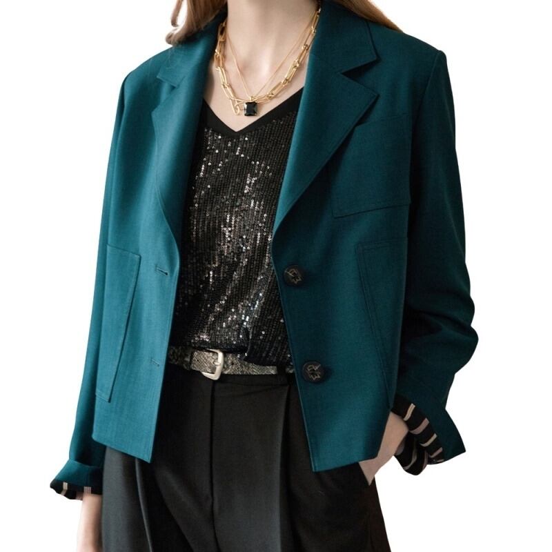 ロールアップポイント クロップド ジャケット ショート丈 襟付き 大人可愛い きれいめ シンプル カジュアル 大人 おしゃれ お洒落 かっこいい 大人女子 こなれ感 個性的 クール モード系 エレガント 主役級 存在感 抜け感 無地 春 秋 謝恩会 二次会 レディース ママ オフィス OL 通勤 学生 通学 デート お出かけ 女子会 休日 イベント リゾート 旅行 ホテル レストラン 着回し 普段使い 韓国系 オルチャン ファッション コーデ スタイル 楽ちん モテ インスタ映え フリーサイズ グリーン