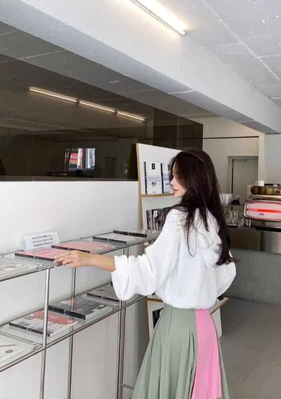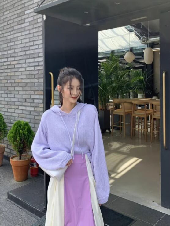 ドロップショルダーと萌袖で、かわいらしくこなれた印象☆