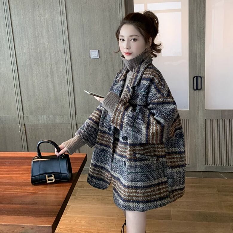 アウター コート ジャケット ワイド ポケット 前開き コンサバ 厚手 カジュアル 大人 おしゃれ レトロ こなれ感 ラフ メンズライク マニッシュ ルーズ 存在感 フォーマル 抜け感 都会的 ラグジュアリー ハイエンド チェック柄 冬 10代 20代 30代 40代 50代 60代 レディース 女性用 オフィス ビジネス OL 通勤 休日 パーティー 旅行 ホテル レストラン 着回し 普段使い 重ね着 楽ちん 暖かい トレンド 体型カバー 2XL 大きいサイズ ゆったり 暖か ブラウン ネイビー