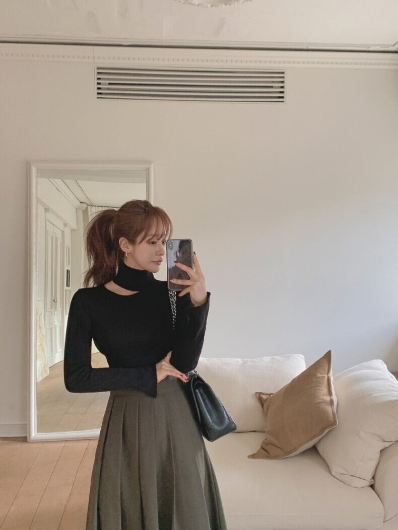 大人女子にぴったりの変形ネックのスリットがセクシーなニットソーです♪