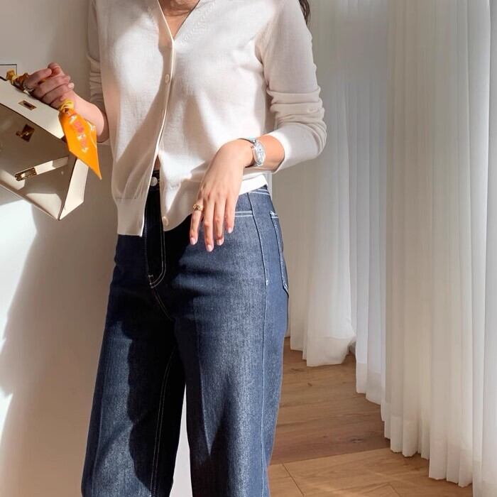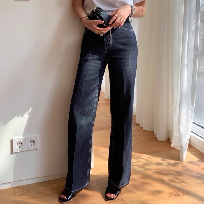 ダークブルーなので様々なトップスやアクセサリーとの相性が良く、日々のカジュアルスタイルに役立つこと間違いなし♪