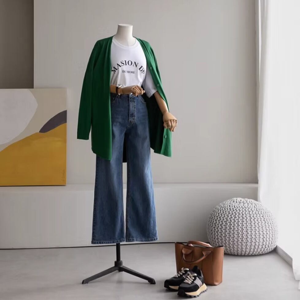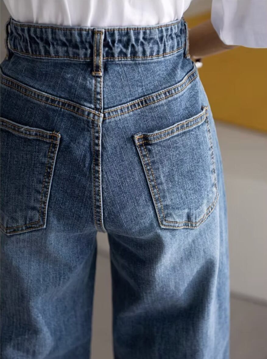 ワイドシルエットでお腹周りもゆったり。ハイウエストで脚長効果バツグン。シンプルなデザインながらも大人可愛いこなれ感があってお洒落、綺麗目カジュアルスタイルにぴったりのデニムパンツです。