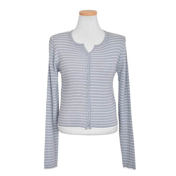 トップス アウター カーディガン 上着 ミディアム丈 袖あり 長袖 萌袖 ラウンドネック スリム タイト 細身 前開き 伸縮性 ニット サマーニット 薄手 かわいい 大人可愛い カジュアル 大人 おしゃれ レトロ ラブリー キュート ガーリー クール ボーダー シマ 春 夏 レディース オフィス ビジネス OL 通勤 学生 通学 デート 女子会 休日 アウトドア イベント 高原 ガーデン レストラン 着回し 普段使い 重ね着 楽ちん モテ 定番 フリーサイズ 白 ホワイト 黒 ブラック 灰色 グレー ピン
