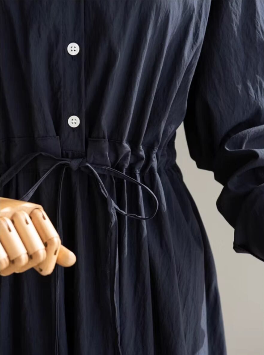 フレアスカートが可愛いシャツワンピースです。ウエストリボンで程よくメリハリのあるシルエットになっています。春秋冬のレイヤードスタイルや、夏のワントーンコーデにもぴったりで、お出かけから旅行まで幅広く活躍します。
