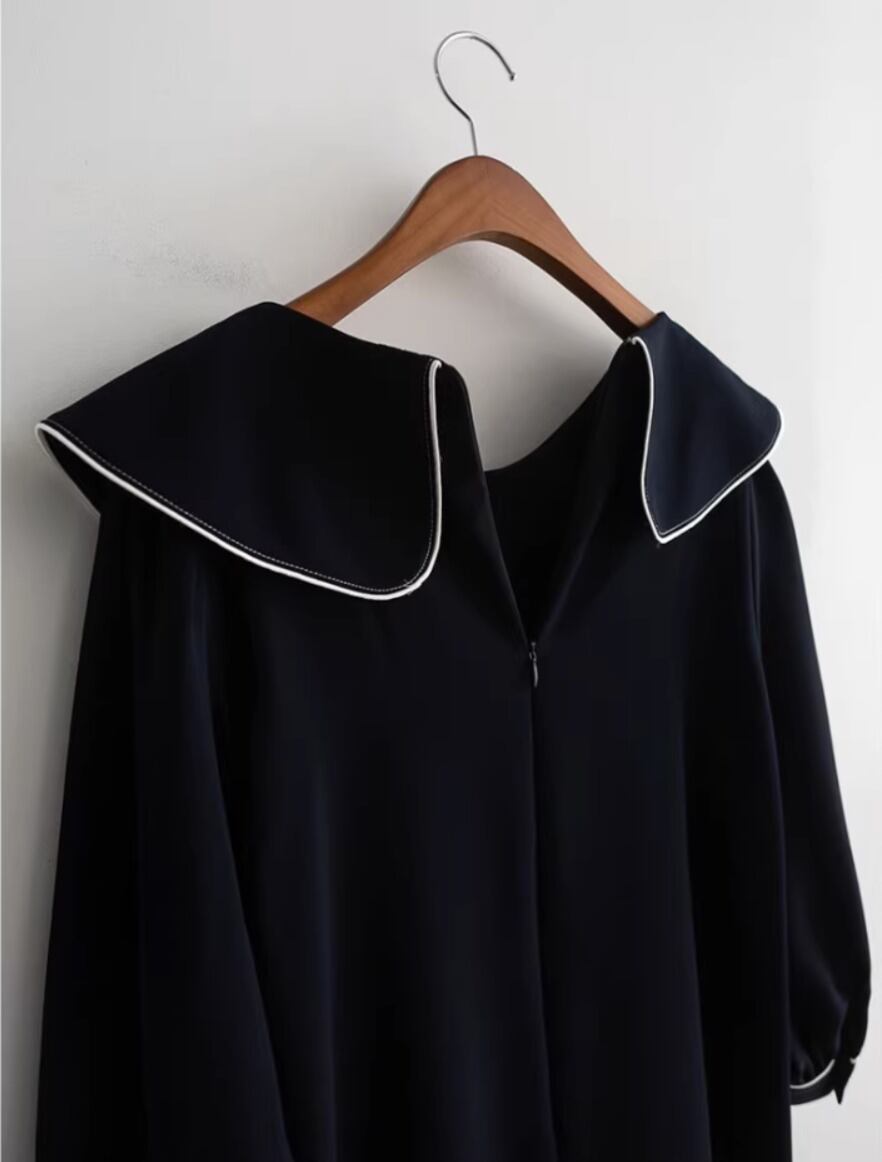 ワンピース フレアスカート シャツワンピース フレアワンピース 膝下 ミモレ ミモレ丈 袖あり 長袖 Vネック 襟付き フレア フリル 大人可愛い シンプル カジュアル おしゃれ お洒落 大人可愛い こなれ感 ラフ キュート ガーリー 抜け感 無地 春 秋 冬 10代 20代 30代 レディース 女性用 ママ 女の子 学生 デート お出かけ 公園デビュー お泊まり 休日 旅行 海 ガーデン レストラン 着回し ファッション コーデ スタイル 楽ちん L XL サイズ ネイビー