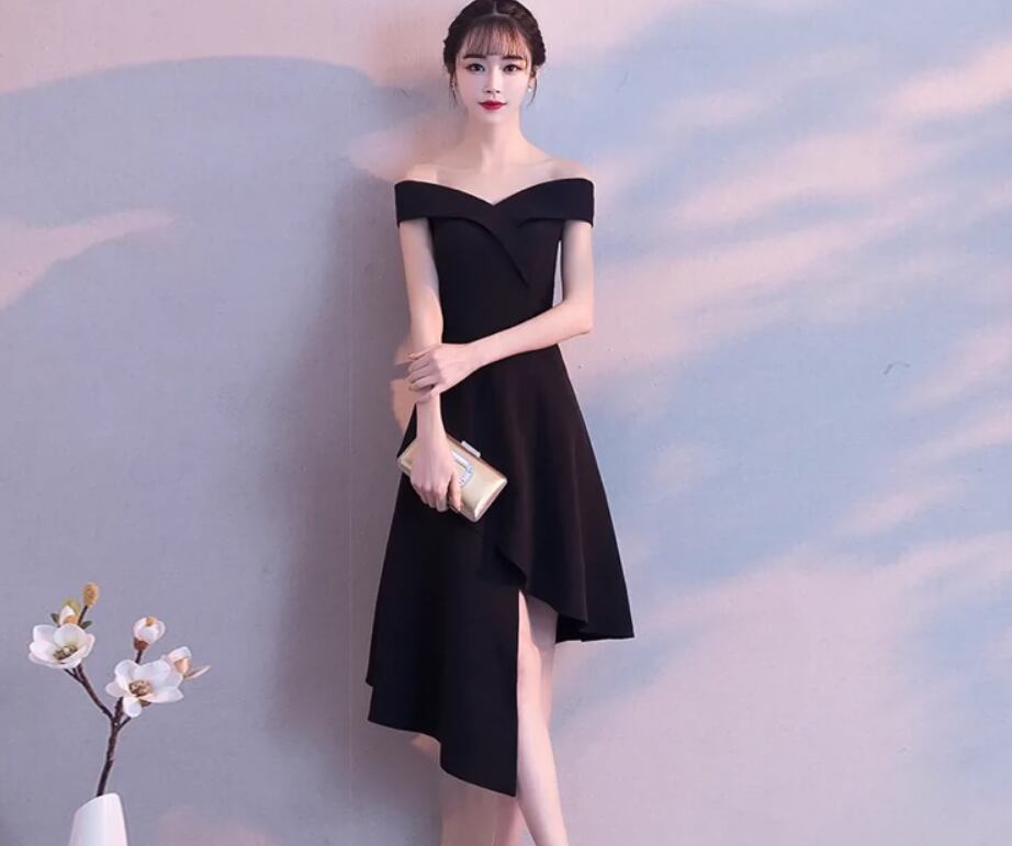 オフショルダーデザインとアシンメトリーなシルエットが、女性らしいセクシーさと上品なエレガンスを演出します。