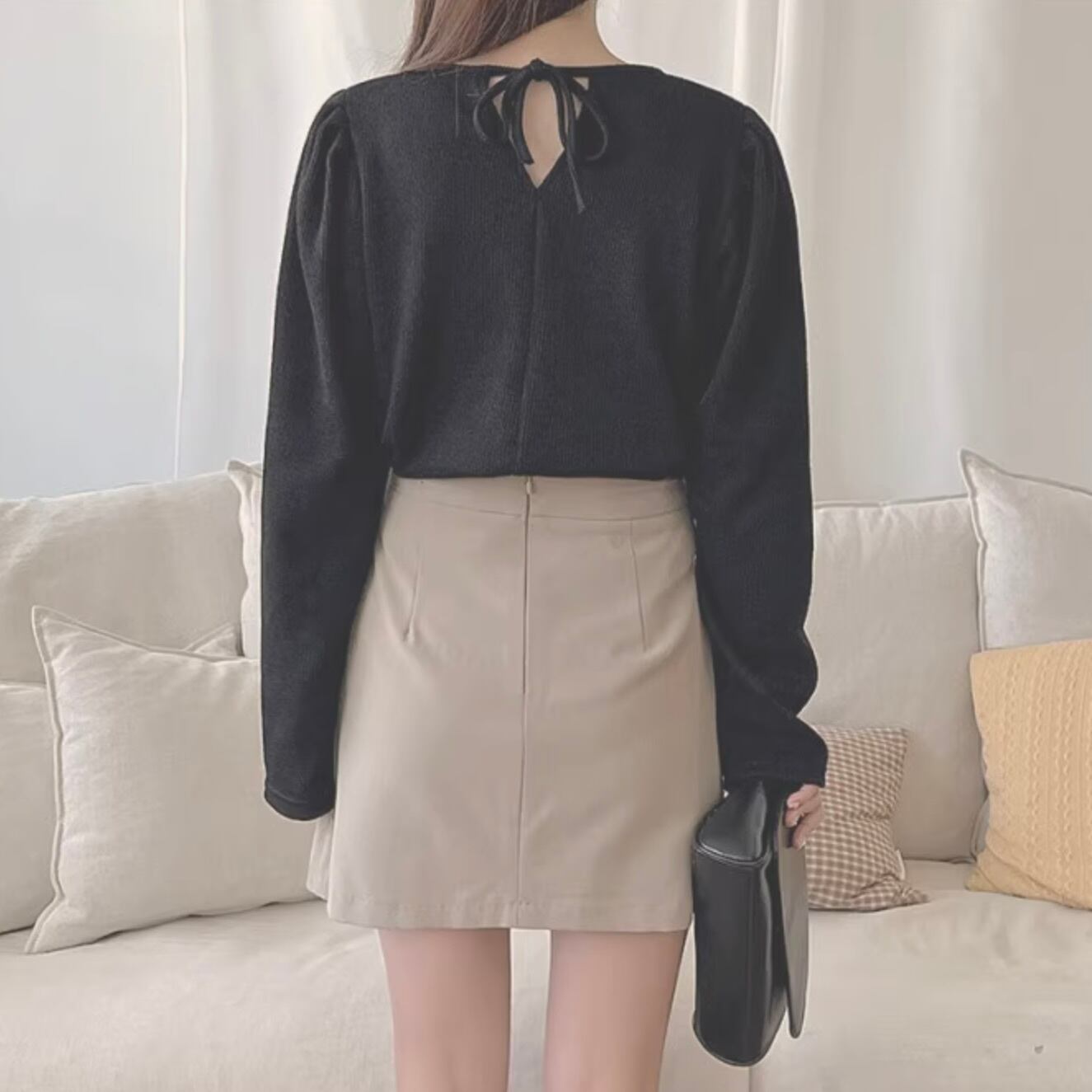 トップス ニットソー 袖あり 長袖 萌袖 Uネック ラウンドネック クルーネック スリム 細身 リボン バックコンシャス リブ 伸縮性 ニット かわいい 大人可愛い きれいめ シンプル カジュアル 大人 上品 おしゃれ かっこいい レトロ 大人女子 こなれ感 ラフ ラブリー キュート ガーリー 抜け感 無地 春 秋 10代 20代 30代 レディース デート お出かけ 女子会 休日 着回し 普段使い 韓国 オルチャン ファッション コーデ スタイル モテ トレンド インスタ映え パステルカラー