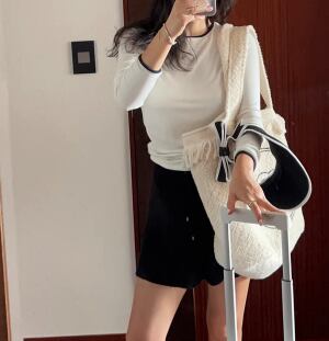 このトップスは、楽ちんさと上品さを兼ね備えた定番の一枚です。フリーサイズで、カラーはホワイト、ブラック、ピンクの3色から選べます。シンプルでありながら、伸縮性があり、体のラインにフィットしやすく、上品な印象を与えます。カジュアルな着こなしも可能ですが、きちんと感があるため、オフィスや学校などの通勤・通学にも最適です。
