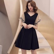ワンピース フレアワンピース ワンピドレス ショート ショート丈 膝下 袖あり 半袖 5分袖 五分袖 パフスリーブ フレアスリーブ Vネック 襟なし フレア Aライン プリーツ シフォン 切り替えデザイン 透け感 シースルー 異素材MIX きれいめ シンプル 上品 おしゃれ こなれ感 キュート フォーマル 都会的 ラグジュアリー ドレッシー 無地 夏 20代 30代 40代 レディース 女性用 デート お出かけ 休日 パーティー レストラン 婚活 お呼ばれ 普段使い 韓国系 モテ 2XL ブラック