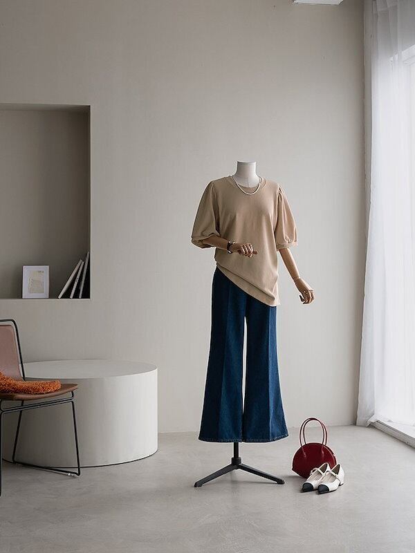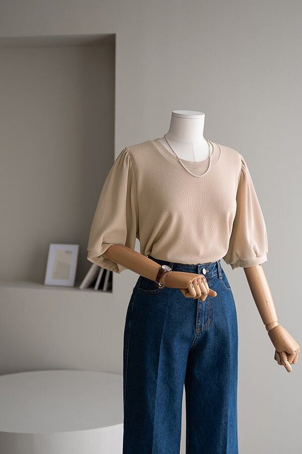 パフスリーブが可愛らしさを程よくプラスし、クルーネックなのできちんと感を演出できます。袖も半袖でありながら、腕がほっそり見えるデザインになっています。フォーマルにもカジュアルにも着まわせる1枚です。お手持ちのボトムスやアウターと組み合わせて、おしゃれなコーディネートを楽しんでください。