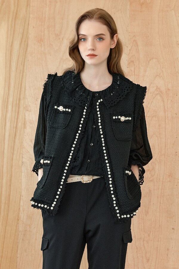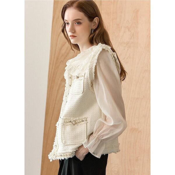 パールキュービック ツイード 華やか お呼ばれ ベスト ミディアム丈 ストレート かわいい 大人可愛い きれいめ 大人 上品 おしゃれ お洒落 大人女子 こなれ感 ラブリー キュート ガーリー 個性的 エレガント 主役級 存在感 抜け感 オールシーズン 入学式 入園式 謝恩会 二次会 レディース ママ デート お出かけ 女子会 休日 パーティー イベント ホテル レストラン 韓国 韓国系 オルチャン ファッション コーデ スタイル 楽ちん モテ インスタ映え フリーサイズ 白 ホワイト 黒 ブラック
