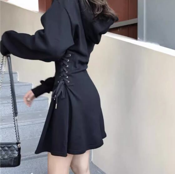 ワンピース プルオーバー パーカー チュニック ミニスカート ミニ ミニ丈 ショート ショート丈 袖あり 長袖 ドロップショルダー 萌袖 Vネック スリム タイト 細身 ウエストマーク フード付き レースアップ かわいい カジュアル おしゃれ かっこいい ラブリー キュート ガーリー ルーズ 個性的 クール 無地 オールシーズン 10代 20代 レディース 学生 通学 デート お出かけ 女子会 休日 旅行 着回し 普段使い 楽ちん モテ 美脚 脚長 S M L XL 黒 ブラック 灰色 グレー