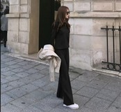 セットアップ ルームウェア パジャマ プルオーバー トレーナー 部屋着 寝巻き ナイトウェア ワイドパンツ ストレートパンツ ミディアム丈 袖あり 長袖 ラウンドネック 襟なし スリム ウエストリボン 伸縮性 上下セット 2点セット ツーピース シンプル カジュアル ラフ スポーティー クール 抜け感 無地 オールシーズン レディース 休日 運動 ジム ヨガ アウトドア 旅行 普段使い 楽ちん 暖かい 防寒 体系カバー S M L XL 2XL ゆったり ゆる 黒 ブラック 灰色 グレー オフホワイト ベ