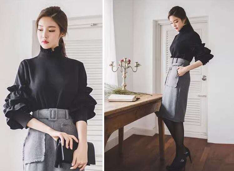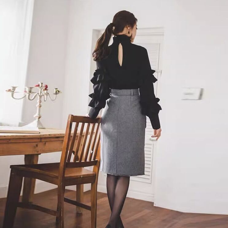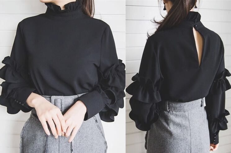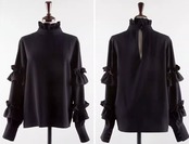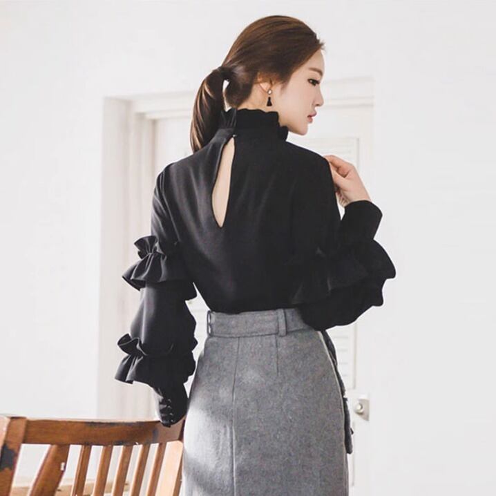 トップス カットソー 袖あり 長袖 ボリューム袖 ハイネック フリル バックシャン バックコンシャス コンサバ きれいめ シンプル カジュアル 上品 おしゃれ レトロ こなれ感 ラフ キュート ガーリー 個性的 存在感 抜け感 都会的 ラグジュアリー ハイエンド ドレッシー 無地 春 秋 20代 30代 40代 レディース 女性用 オフィス ビジネス OL 通勤 デート お出かけ パーティー ホテル レストラン ショッピング 婚活 普段使い 韓国系 楽ちん 体型カバー ホワイト ブラック モノトーン